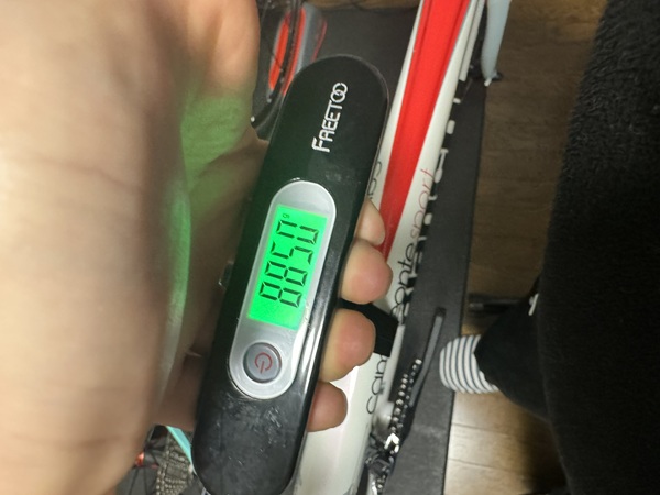 分解編でカットした純正のシートポストと併せて取り付けたら、ペダルや備品を装着する前にドキドキの重量測定です!!