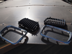 今回は色落ちの目立つフロント周りを重点的に塗ります。モールだけでなく、キドニーグリル内やバンパー下部のフィン部分も対象です。